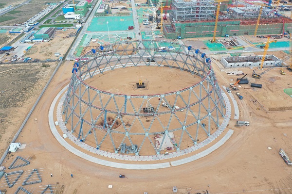 国电双维电厂新建工程钢结构间冷塔项目1#间冷塔第三层顺利完成合拢